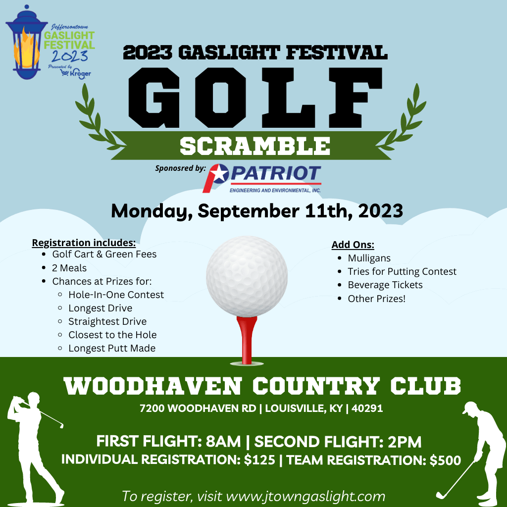 The Jeffersontown Chamber is proud to host the 2023 Gaslight Festival Golf Scramble presented by Patriot Engineering & Environmental, Inc.